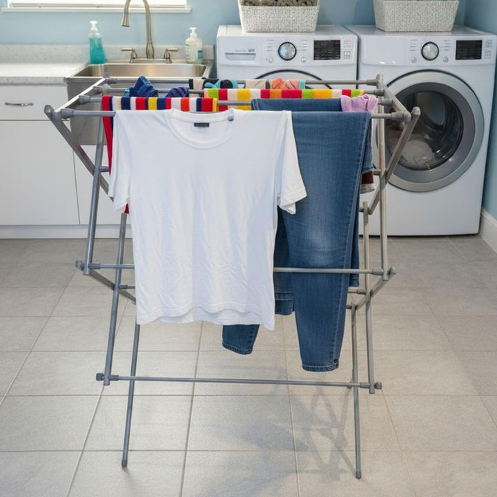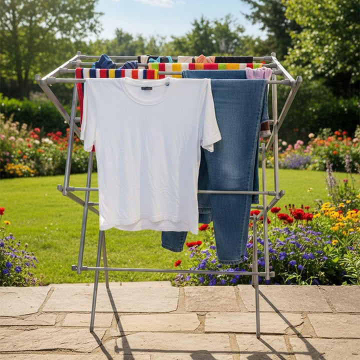 - Space-Saving, Foldable Design: Designed for modern homes, the airer features a clever foldable design. When not in use, it collapses into a slim, flat profile for incredibly easy storage in a cupboard, under a bed, or in a closet, making it perfect for flats and small spaces.