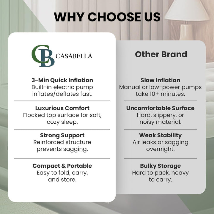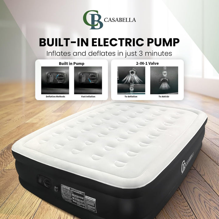 Casabella Air Bed - Airbed with Built-in Electric Air Pump Mattress for Home, Camping.