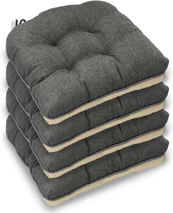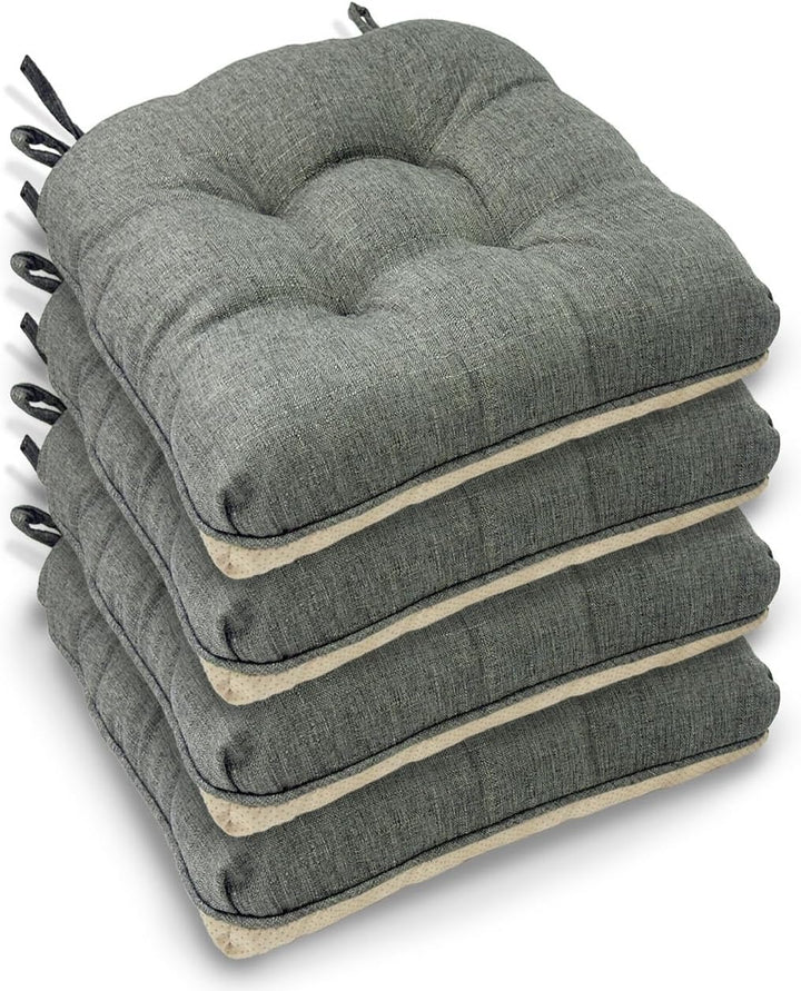 Casabella 4-Piece Chair Pad Set elevates every seat in your home, designed to blend superior comfort with practical elegance. These cushions measure a generous 45x45cm with 8cm of plush thickness, providing ideal coverage and support for standard dining chairs while seamlessly fitting wooden, metal, and plastic seating alike. At the heart of their comfort is the premium microfiber filling, which offers exceptional softness while maintaining supportive resilience. This carefully selected material cradles your body, effectively alleviating pressure on hips and tailbone during extended sitting—whether for family dinners, work sessions, or relaxed gatherings. The result is noticeably reduced discomfort and enhanced sitting pleasure that makes hard chairs feel luxuriously inviting. Anti-skid backing combines with two adjustable tie straps to create a dual-anchoring system. This intelligent engineering ensures the cushions remain perfectly positioned through daily use, eliminating constant readjustments and providing stable, worry-free seating whether you're sitting down or standing up. With stain-resistant polyester fabric, these chair pads are built for lasting beauty and easy maintenance. The robust cover withstands daily wear while offering simple cleanup—just wipe with a damp cloth to refresh. Their versatile round-square shape and neutral color options complement any decor style, from modern kitchens to rustic dining rooms and garden patios. This complete set of four matching cushions delivers immediate comfort and coordinated style to your entire seating arrangement.