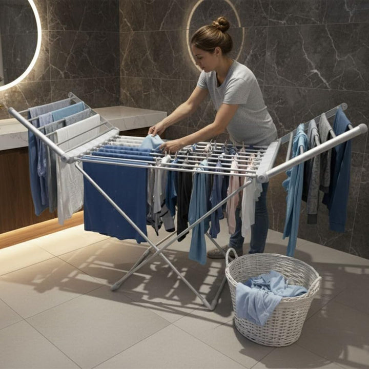 Generous 11.5m Drying Capacity: Designed for full family loads, this airer provides 11.5 meters of heated drying space. It effortlessly handles up to 15kg of laundry, from everyday garments and towels to bedding, offering a practical solution for all your indoor drying needs.