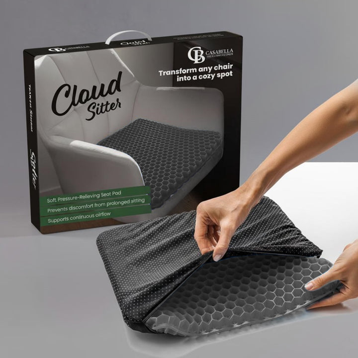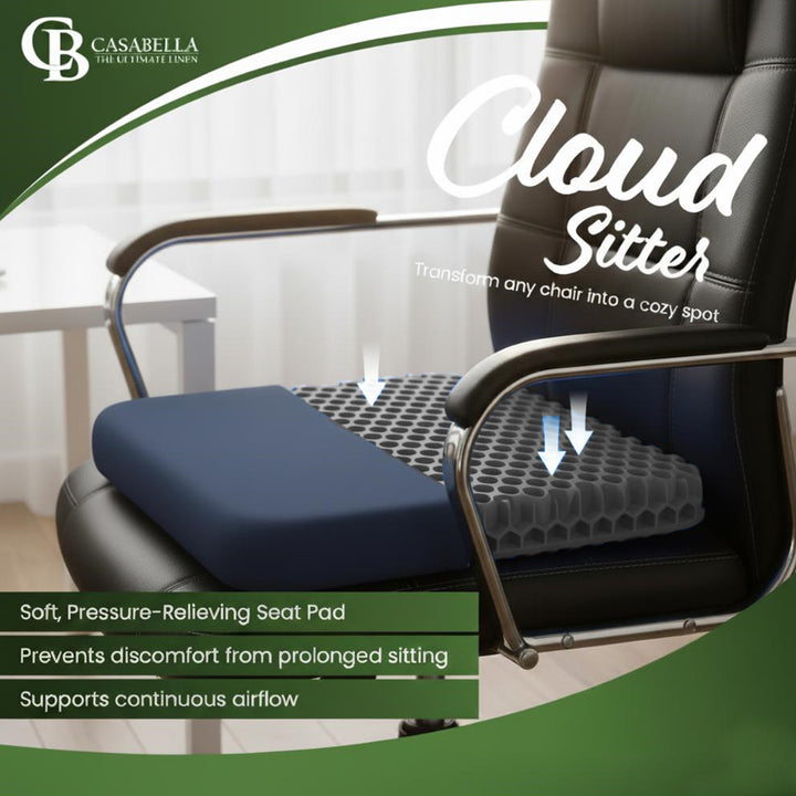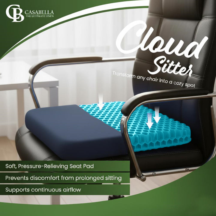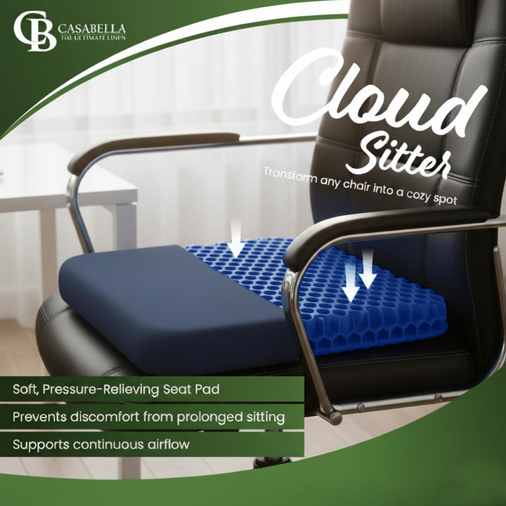 Casabella Gel Seat Cushion for Back Pain Relief - Honeycomb Orthopaedic Cushion for Sciatica &; Coccyx Pain - Non-Slip, Breathable Office Chair & Car Seat Cushion for Long Sitting, Wheelchair.
