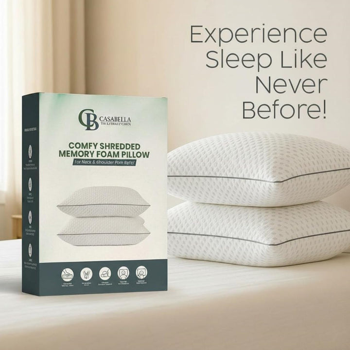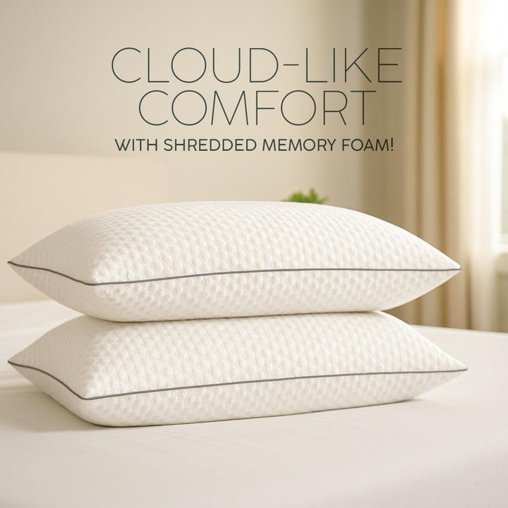 Casabella Pillows - Shredded Memory Foam - Pillow 2 Pack for Neck & Back Support, Shoulder Pain Relief.