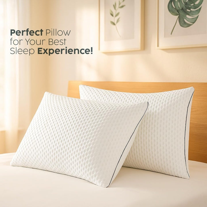 Casabella Pillows - Shredded Memory Foam - Pillow 2 Pack for Neck & Back Support, Shoulder Pain Relief - Breathable Medium Firm Pillows - Hypoallergenic Bedding, Luxury Sleep Experience 50x70cm.