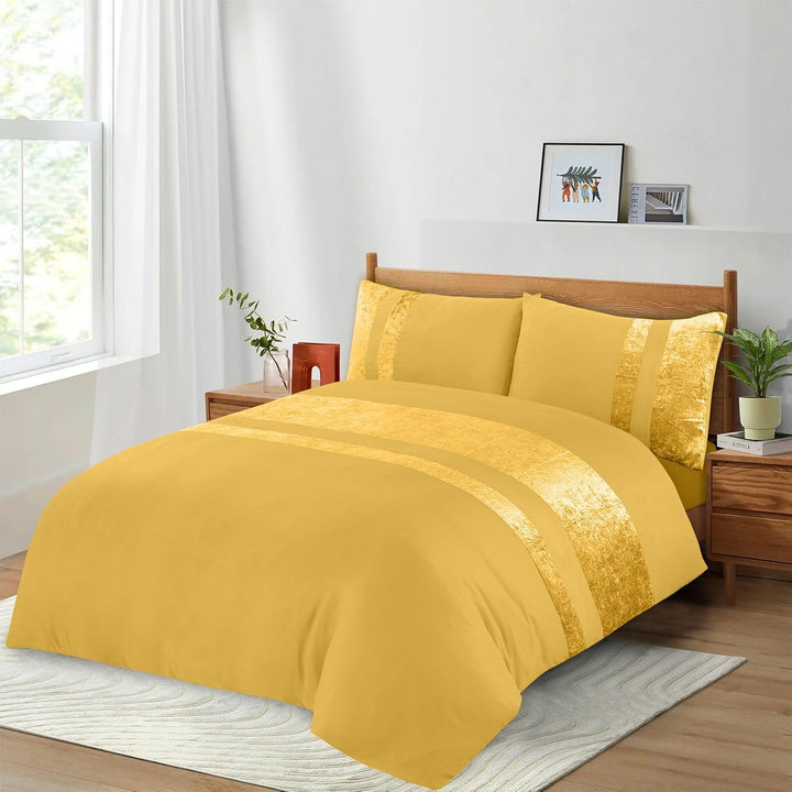 - Luxury crushed velvet band quilt Duvet Cover Sets with matching pillow case Double bedding set. Elegant look for any bedroom.