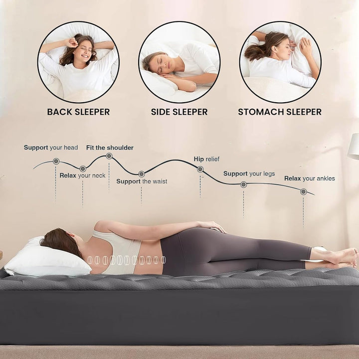 · Pressure Relief & Spinal Support: Conforms to your body’s curves, reducing pressure on hips, shoulders, and back. Ideal for all sleep positions (side, back, and stomach) and minimizes motion transfer.
